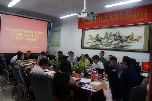会议主要就“电子信息工程技术”专业和“应用电子技术”专业人才培养方案及《单片机技术及应用》《视频监控技术》《智能电子产品设计与制作》《电子线路板技术及应用》四门专业核心课程标准展开了汇报和讨论。