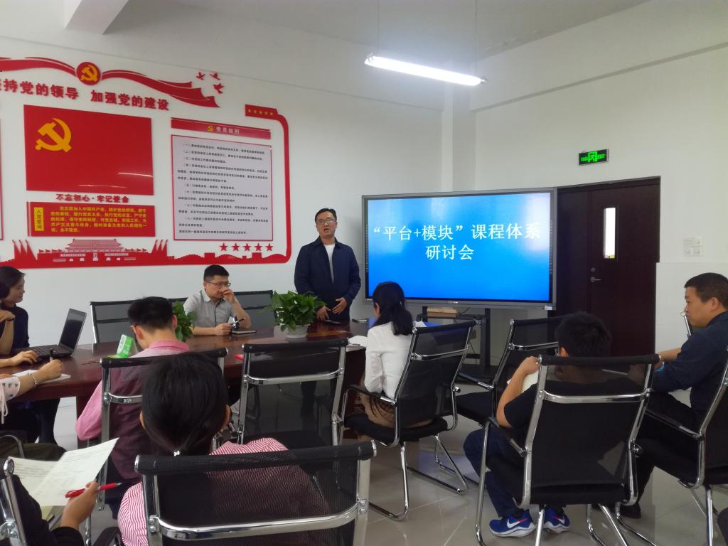 王用鑫主任阐述了“平台+模块”课程体系建设的重要意义,在职业教育大发展的新形势下,专业群平台的建设可助推专业更高层次的发展,模块课程建设为专业培养目标提供了更加清晰高效的发展路线,新课程体系建设最终是让员工能够实现更高质量的就业。