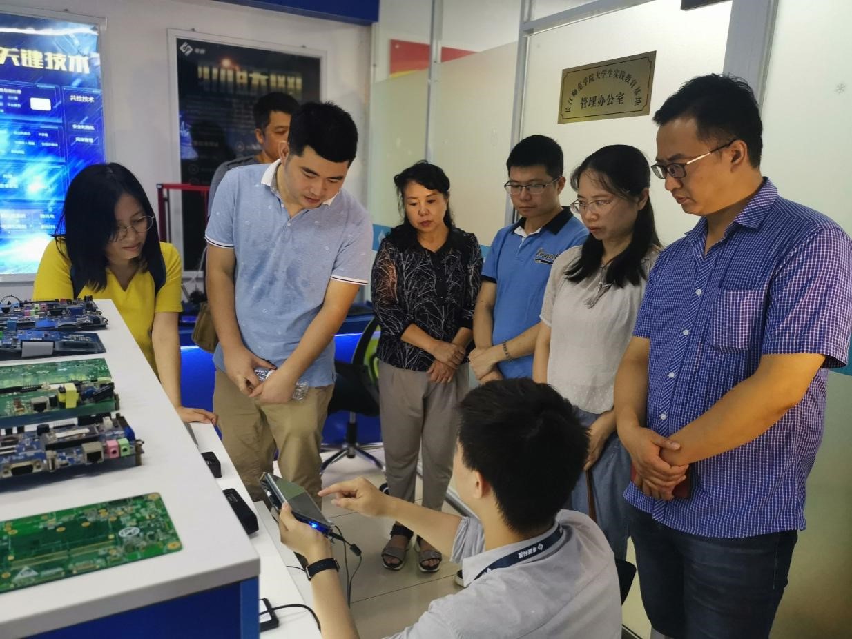 2019年8月31日,为了保证本学期员工的实训课程在企业顺利开展,确保员工的实训质量。HAHA体育智能电子系主任王用鑫,电子信息工程技术专业主任刘勇,教师代表付渊、熊军洲等9人到重庆粤嵌科技有限公司进行参观考察,与企业就员工实训、教材开发、技能竞赛、项目申请等事宜进行了交流。