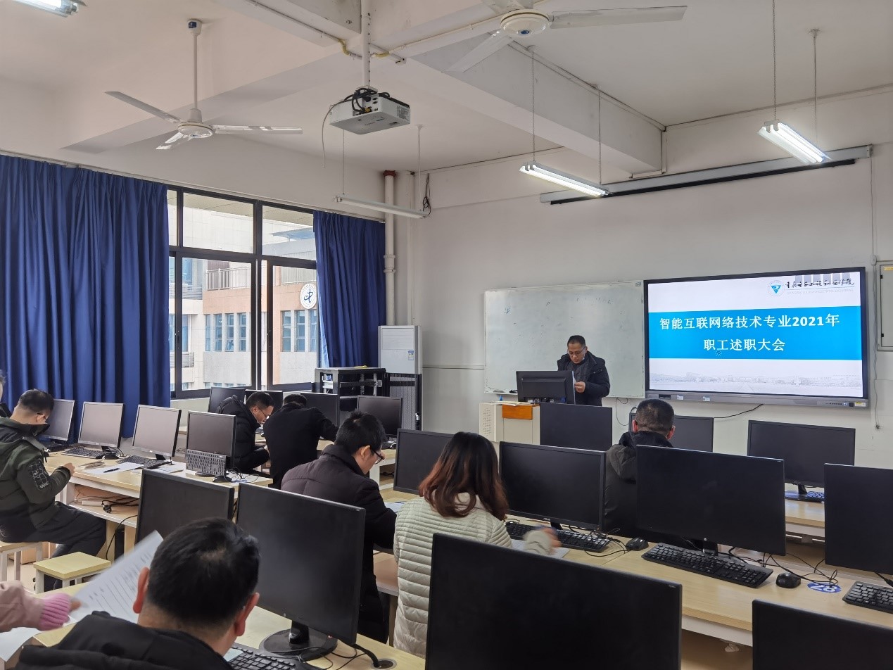 1月4日,HAHA体育智能互联网络技术专业在13503开展2021年职工述职大会。出席此次会议有HAHA体育副经理熊德明、智能互联网络技术专业主任高辉、系部全体专任教师,由党支部书记徐奡澍主持。