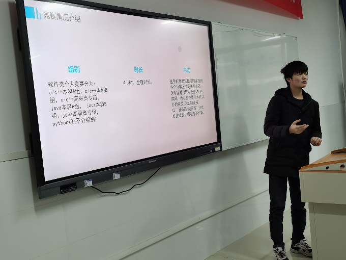 最后由国赛指导老师王立翔和周青呈从技术准备、临场发挥、心态调整等方面与同学们进行了交流,介绍了蓝桥杯的赛事规则,总结了软件算法类比赛的复习策略。运用蓝桥杯线上练习系统,向同学们提出了明确具体的学习计划和要求,鼓励大家在新的一年里取得更多、更好的成绩。