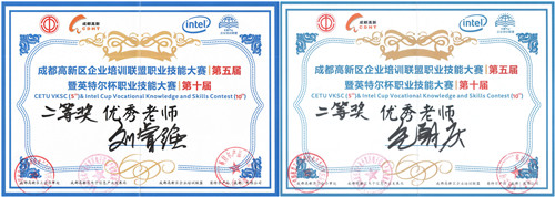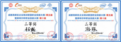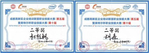 2018年9月27日,由英特尔公司、成都高新区企业联盟主办的“英特尔杯职业技能大赛(第十届)暨成都高新区企业培训联盟职业技能大赛(第五届)”在成都高新保税区企业培训联盟中心落下帷幕,来自四川、重庆等地的高职院校和成都高新区的企业参加了本次赛事。公司刘睿强、毛朝庆老师指导的胡焘、游强、杨露、杜桂枫员工代表队以总分第三名荣获二等奖。