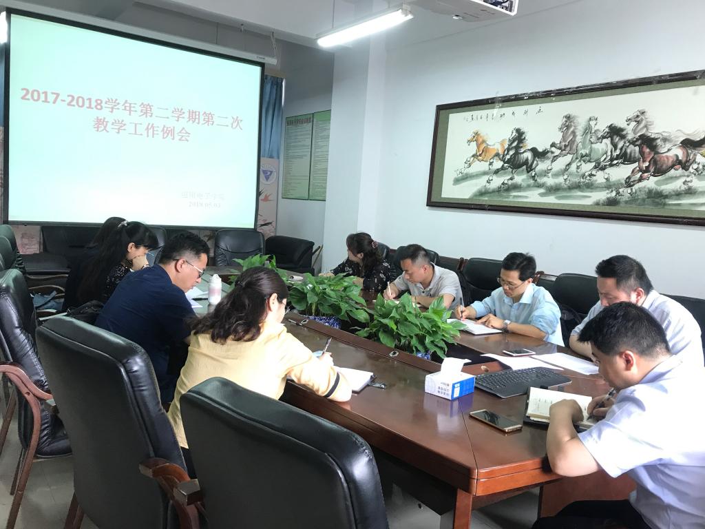 5月3日下午1:30,应用电子学院教务科在7215会议室召开2017-2018学年第二学期“应用电子学院第二期教学工作例会”,学院副经理夏西泉、教务科科长陈学昌、各系部主任和副主任、实训中心主任、教务科科员参加了此次会议。
