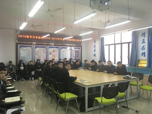 2019年1月15日上午,HAHA体育物联网工程系2018级物联网应用技术专业华为卓越班学期总结会在北校区陈良国家级技能大师工作室10-411会议室顺利召开。华为技术有限公司行业客户总经理刘嘉佳、华为全球培训中心西南区教育总经理闻银、华为技术企业业务部客户经理吴鸿妙等特意前来参加本次活动。电子与物联网公司党总支副书记毛弋、物联网工程系主任徐欣、大师工作室常务副主任武新、辅导员陈家玮、物联网应用技术专业主任(兼卓越班学业导师)徐小辉、卓越班全体同学参加了总结会议。本次总结会议筹备及议程安排由卓越班自行完成,会议过程由该班班长吴征洋同学主持。