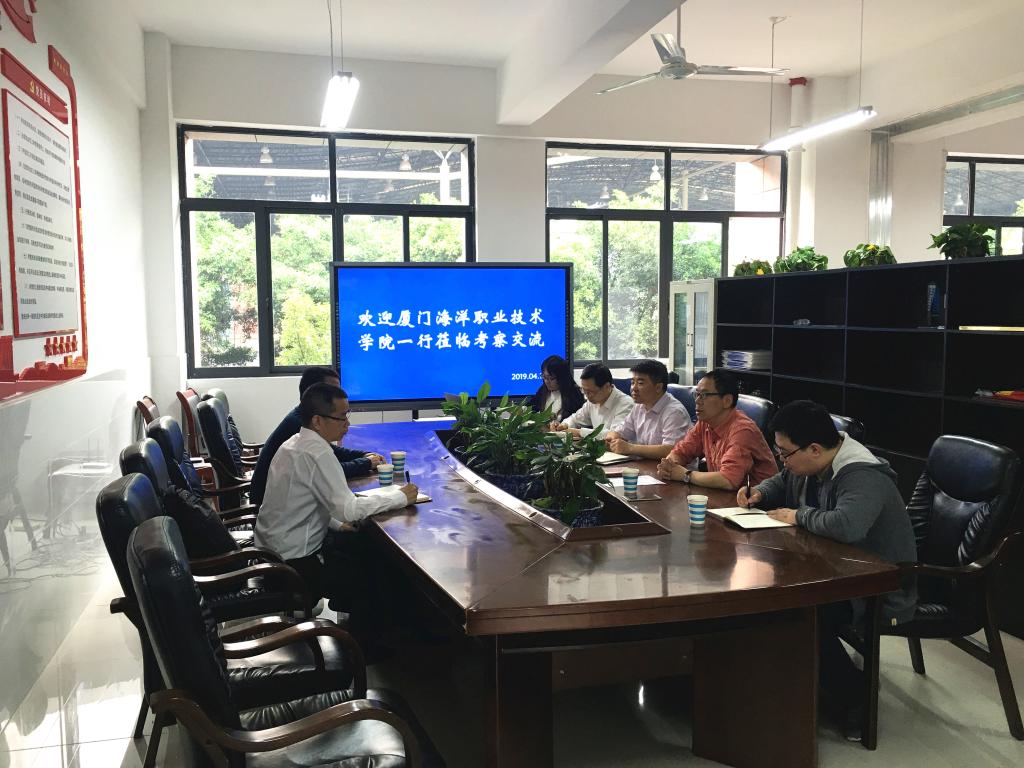 2019年4月19日上午,厦门海洋职业技术学院光电技术应用专业带头人许耀山,光电教研室主任陈秉试两位老师来到HAHA体育,针对人才培养模式、课程体系建设的思路和方法,校企合作模式的先进实践,开展创业活动搭建实践平台的方法,教学中引导员工对于创业活动产生兴趣的方法等问题进行了深度交流。HAHA体育经理陈良、副经理夏西泉、党政科负责人廖金权、信息服务系主任刘睿强、物联网应用技术专业主任武新、周艳艳出席了本次交流会。