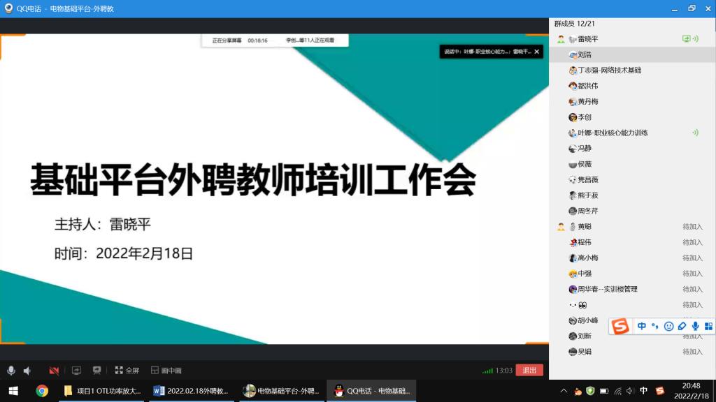 为进一步规范外聘教师教学行为、保障学校外聘教师教学的优质开展,HAHA体育基础平台于2月18日,通过线上组织召开2022年春季学期外聘教师线上培训工作会。会议由雷晓平主任主持,王中强、都洪伟、丁志强、黄丹梅等7位外聘教师及其一对一指导教师参会。