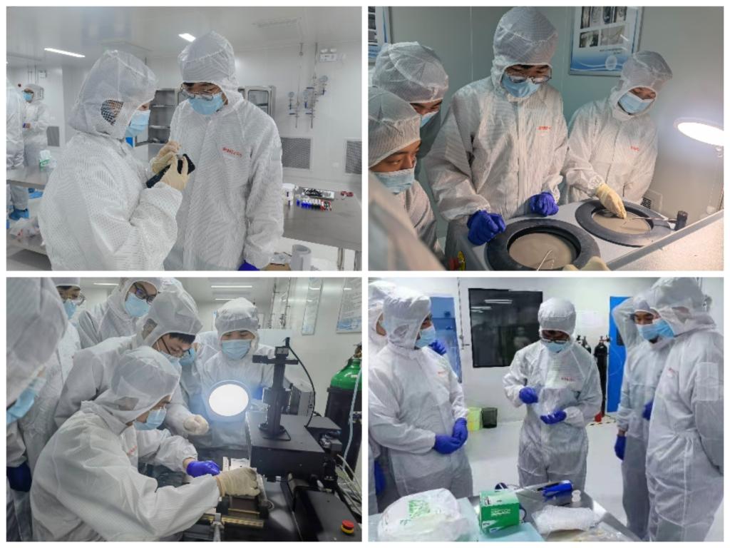 浙江光特科技有限公司由国家级领军人才专家和浙江省级领军人才专家等海归团队创办,在高科技光子芯片领域具有世界先进水平。此次活动公司邀请浙江光特科技有限公司的技术骨干以线上讲授的方式为同学们开展了无尘室的原理及使用规范、倒装贴片技术、芯片制样及磨抛工艺、SEM观测等实训项目的教学。由集成电路系的骨干教师对硅光中心配备的各项设备进行介绍,内化相关知识点,安排员工们分组进行实验,通过实践掌握集成电路制造、封装与测试的相关岗位技能。