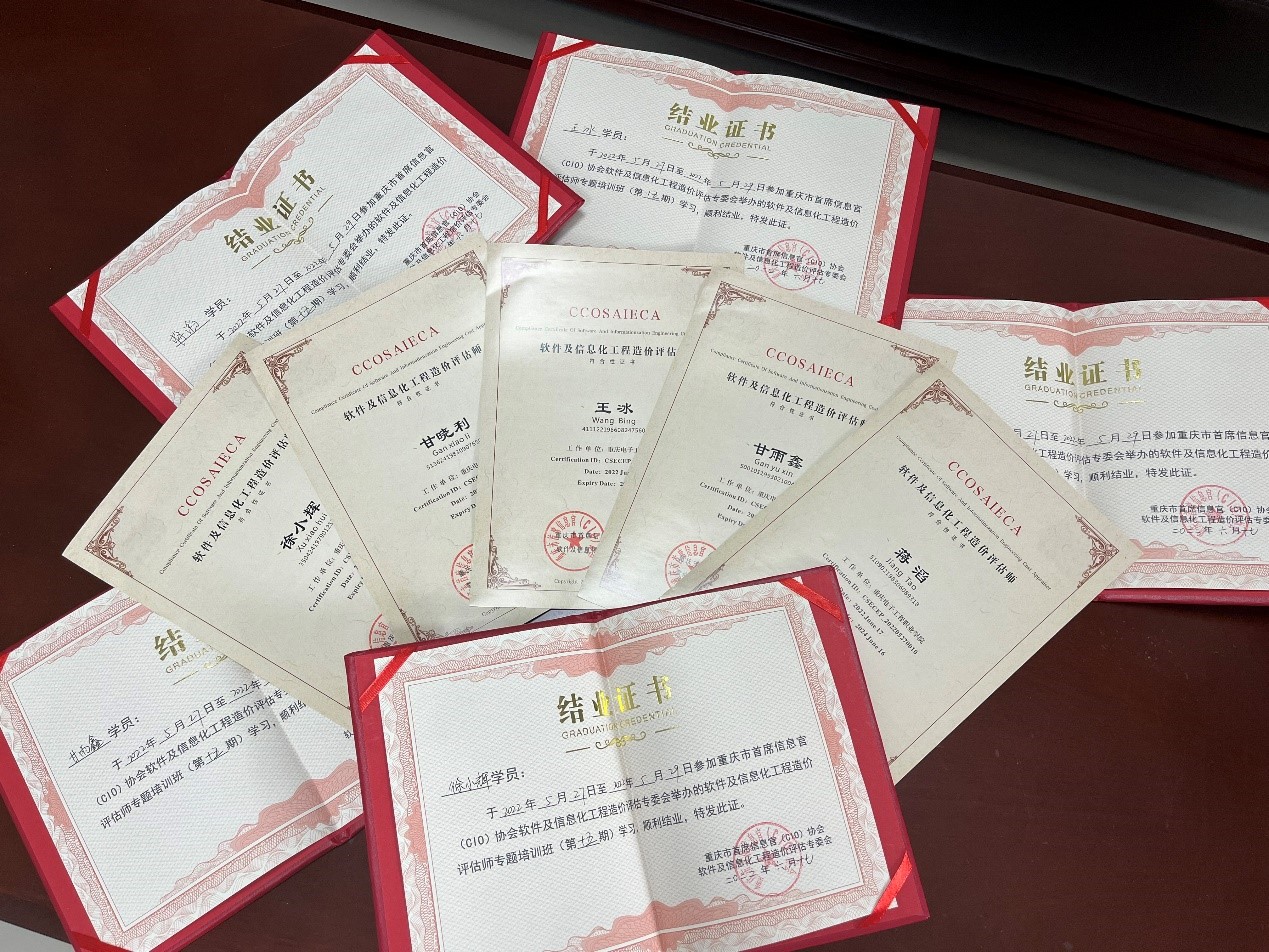 近期,由重庆市首席信息官(CIO)协会软件及信息化工程造价评估专委会举办的软件及信息化工程造价评估师专题培训班(第十五期)在海王星科技大厦顺利举行。HAHA体育智能互联网络技术专业王冰、蒋滔、甘雨鑫、甘晓利,物联网应用技术专业徐小辉共5名教师参培,并顺利获得软件及信息化工程造价评估师符合性证书。