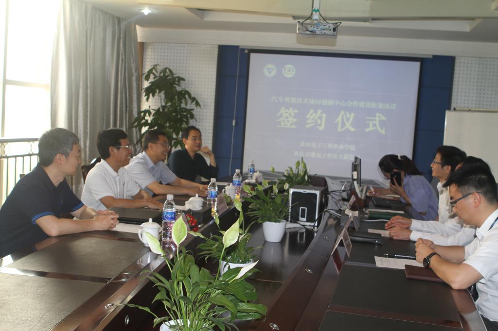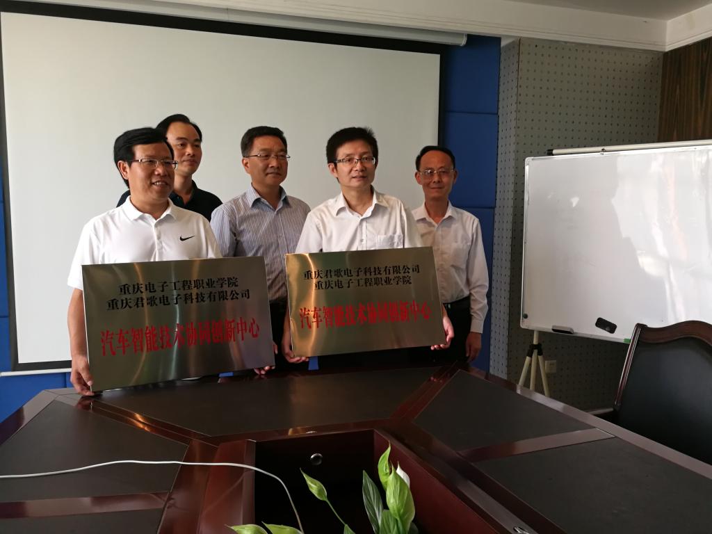 近日,公司和重庆君歌电子科技有限公司联合成立了汽车智能技术协同创新中心。2018年5月16日上午,副董事长刘成俊教授带领科研与发展规划处处长彭海深教授、应用电子学院经理王正勇教授、应用电子学院电子技术系主任林涛副教授赴重庆君歌电子科技有限公司总部参加协议签署及揭牌仪式。