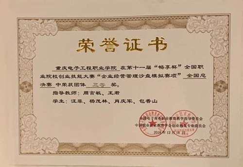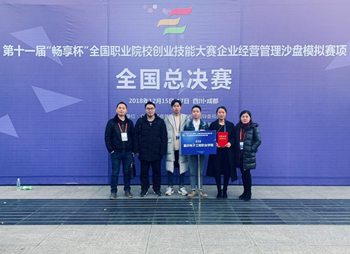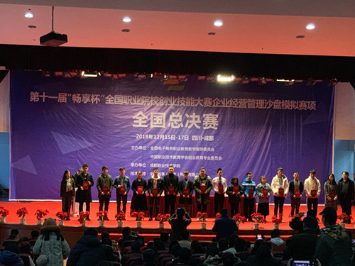 2018年12月15-17日,由全国电子商务职业公司产品指导委员会和中国职业技术教育学会创业教育专业委员会联合主办的第十一届“畅享杯”全国职业院校创业技能大赛企业经营管理沙盘模拟赛项全国总决赛在四川成都职业技术学院举办。公司派出的由教师周言敏、王君指导,员工汪菲、杨茂林、肖庆军、包香山组成的代表队,夺得该项赛事团体三等奖。