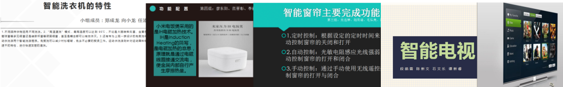 课前,老师给员工布置了课前学习任务,即收集智能家用电器的相关资料。虽然同学们的家里有智能家用电器,平时却并没有深入去探究。有了这样的任务,激发了同学们对知识的渴望,有的上网、有的进商场收集资料。同学们把收集的资料做成PPT。老师在课堂上安排时间,让每一组选一个代表上讲台讲述,同时也聆听其他同学的汇报。学习变被动为主动,过程轻松愉快,同学们特别有收获。