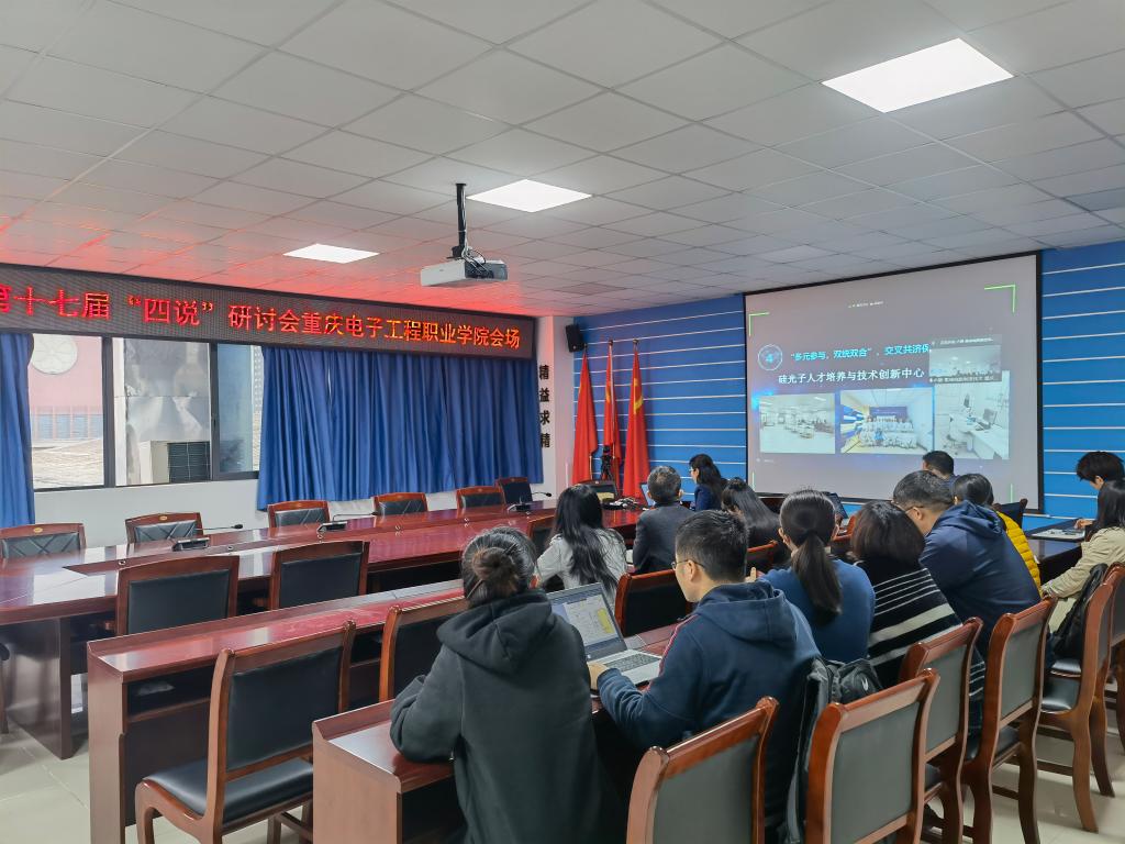 集成电路系主任马岗强在“说专业群”环节中向与会嘉宾介绍了公司集成电路专业群对接“芯屏器核网”全产业链背景下的组群逻辑,“平台+模组”课程体系下的专业群建设内涵及成果,集成电路虚拟仿真实训基地以及硅光子人才培养与技术创新中心的建设情况。并探讨和展望了中职、高职、职教本科一体化生态圈的建设规划,全方位彰显了集成电路专业群在落实立德树人根本任务,提升职业公司产品质量过程中所做的积极贡献。
