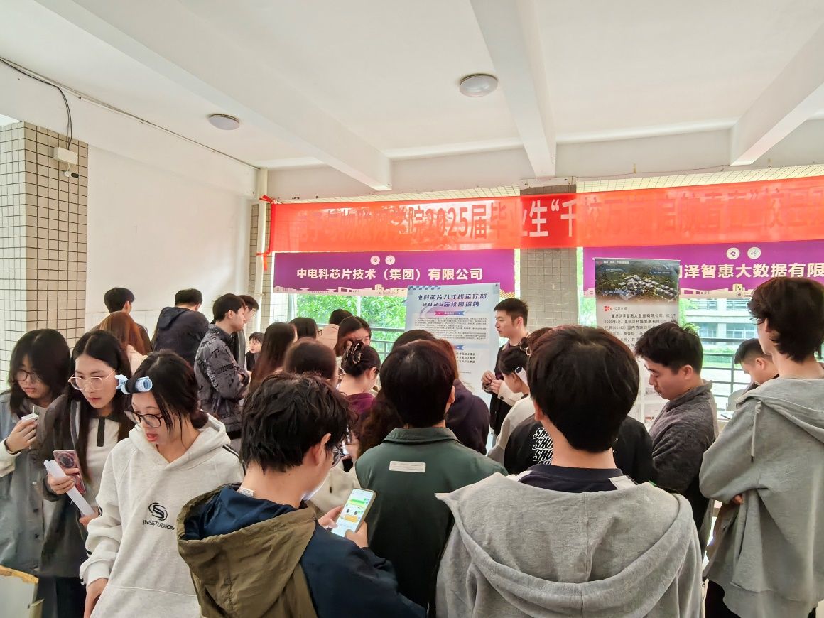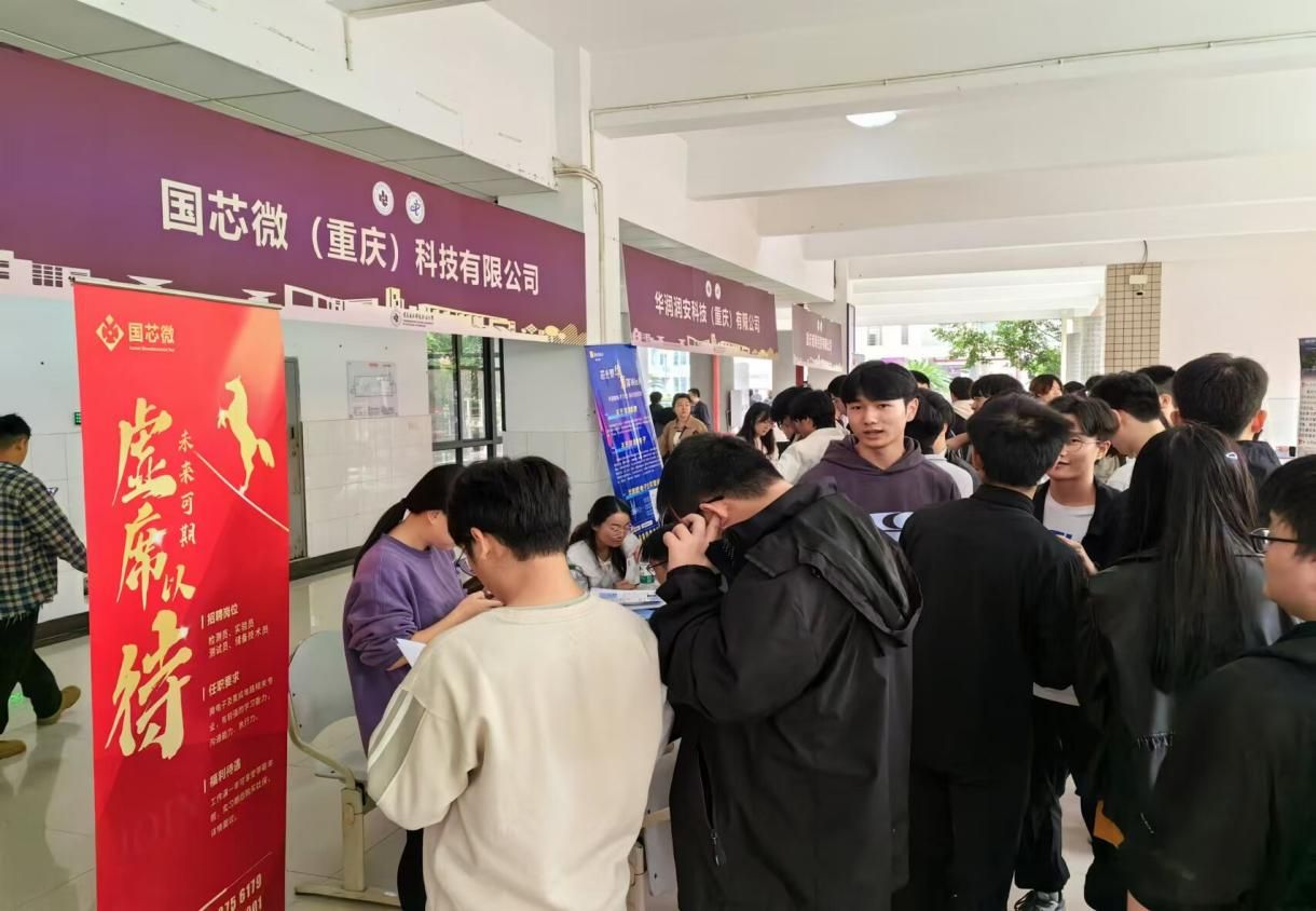 此次校园双选会邀请了40余家合作企业到校选才,共提供了91个岗位面向772人招聘。岗位涵盖专业技术研发、芯片封装测试、物联网工程技术等方向,与公司专业对口率达85%以上,其中有中电科芯片技术(集团)有限公司、国芯微(重庆)科技有限公司、杭州芯云半导体集团有限公司、华天科技(南京)有限公司等行业领军企业。双选会现场,学院2025届毕业生到场积极与参会企业负责人、人力资源管理经理等交流,详细了解招聘岗位、薪资待遇、晋升渠道等就业信息;用人单位详细解读薪资待遇、住房福利、职级晋升渠道等公司制度。学院领导、毕业班辅导员、专任教师在现场与企业招聘负责人深入交谈,了解企业用人需求,并对求职的同学现场进行指导。