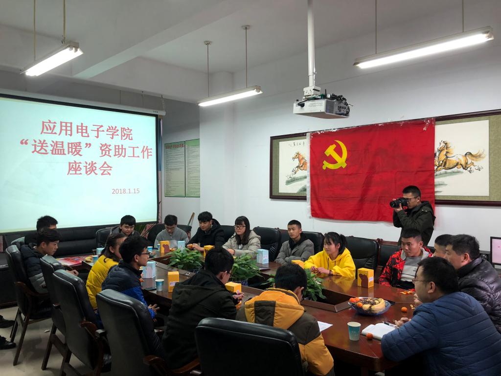 1月15日(农历十一月二十九日),重庆电子工程职业学院应用电子学院于7215会议室举办“送温暖”资助工作座谈会,本次会议由党总支韩德勋书记、学管科科长团总支张力书记主持。