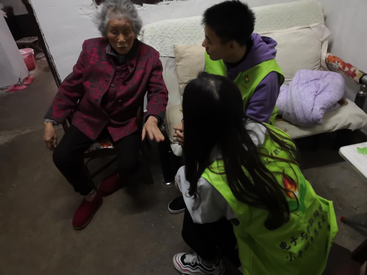 到达社区后,社区的吴婧副书记给志愿者们讲解了关于社区老人的一些现状,他们大多都是独自一人在家的孤寡老人,她们的亲人都忙于工作,无暇留在身旁陪伴。志愿者们分工合作,分别来到了三户婆婆的家里,他们给婆婆按摩,陪婆婆聊天,用行动汇聚了浓浓的爱心。婆婆们都非常友好,热情地给志愿者们拿糖果,让志愿者们进屋坐,志愿者们还发现第三户的向婆婆已经有九十岁的高龄,在与向婆婆聊天的过程中还了解到向婆婆是一名党员,而且已入党四十多年了,早年还经常参加各种党会,向婆婆感叹道“好多年没参加党会了,现在恐怕都跟不上党了”。随后志愿者们还将一些小礼品送给了三位婆婆,临走之际,志愿者们分别与三位婆婆合影留念,婆婆们还表示欢迎以后常来家里玩,看到老人们脸上洋溢出开心和幸福的微笑,志愿者们也感到很高兴。