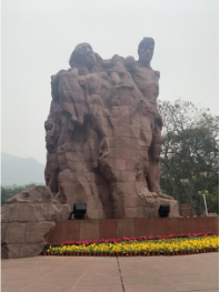 这尊11米高的红色花岗群雕是牺牲在集中营的300多名烈士代表,主题叫做浩气长存。经过艺术的表现,群雕烈士们的形象既伟岸超人又平凡质朴,具有永远的凝聚力和感召力。 雕塑共分为四个面,展示了先烈们的不同英勇形象。正面主题:宁死不屈。着重体现革命者视死如归的精神风貌。他们手捧那位最先倒下的勇士身躯,悲痛万分。死者的圣洁,生者的愤怒,形成了有力的对比。这一艺术的力度,迸发出震撼苍天的浩然正气。