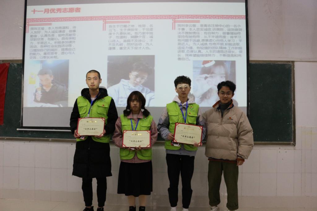 大会第三项,对10月、11月、12月以及运动会优秀志愿者进行表彰颁奖。
