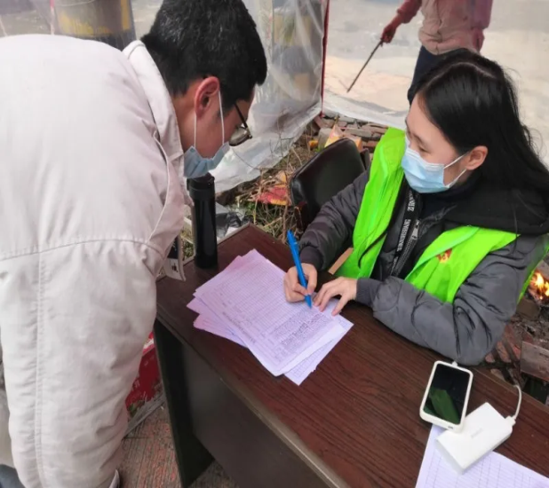 在疫情肆虐的日子里,来自重电电物学院微电1803的纪人洁便是这广大青年志愿者中的一员。她每天的工作就是为社区人口出入做登记,从早上8点到晚上8点。被问及为何选择站出来奋战一线时,她说“作为新时代老员工和入党积极分子,希望自己能在本次疫情防护工作中贡献自己的一份力量,有效防范疫情进一步发展。”
