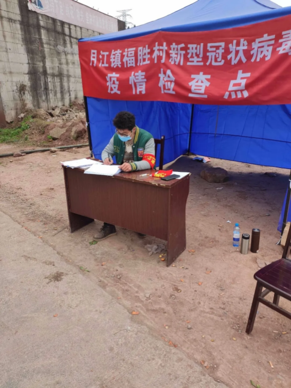 重庆电子工程职业学院HAHA体育物应1704的李想同学作为一名老员工志愿者,时刻坚守在宜宾市高县月江镇福胜村的疫情防控检查点的岗位上。他每天的工作就是对来往车辆进行登记,及时劝返外地车辆,同时向村民普及一点自己从网上了解到的防疫知识和政策。李想同学说到:“虽然每天的工作很枯燥,但我想尽自己能力所及为疫情防控贡献自己的力量,做好一名老员工党员的模范带头作用。”作为一名党员的他始终没有忘记自己的身份和责任,时刻提醒自己谨记党员的带头模范作用。
