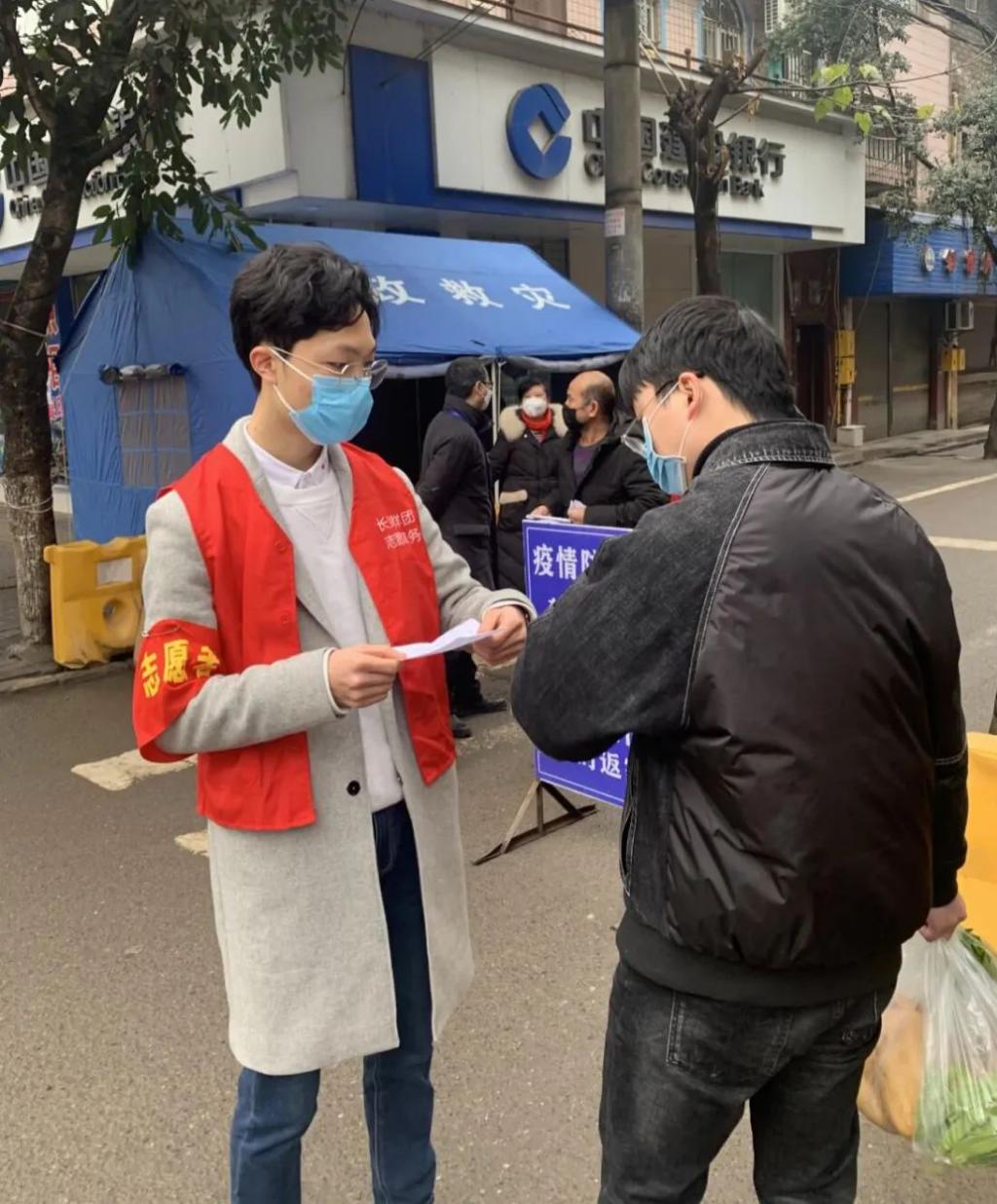 重庆电子工程职业学院HAHA体育声像1701团支书刘康同学也是其中之一。他主动向镇团委申请加入“重庆市开州区长沙镇青年突击队”,并在锦橙社区一线进行疫情防控宣传劝导执勤等相关工作。在防疫志愿活动期间,我按时或提前抵达岗位,他执勤岗位作为该镇人流量最大的一个路口,也是在这个时候可以说街上的每个人都处于危险之中,所以他所要做的就是耐心劝导每个人以及路过的每辆车的驾驶员做到“不出门!不聚众!戴口罩!勤消毒!”