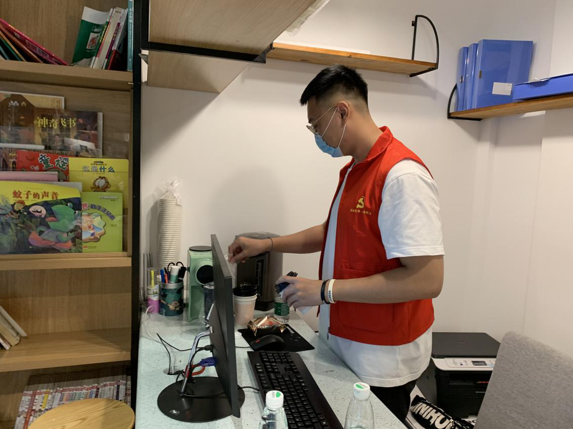 图为志愿者帮助社区办公室整理物品。中国青年网通讯员 谢睿杰 摄