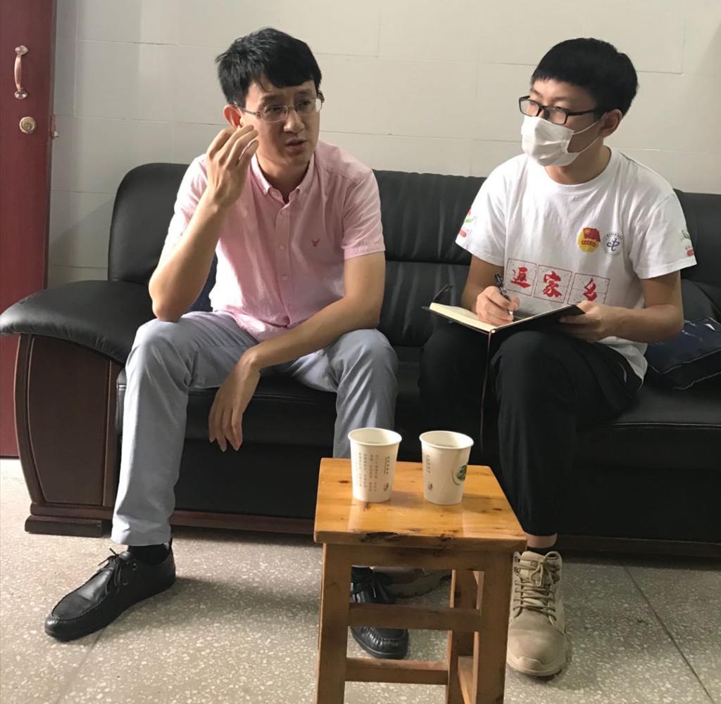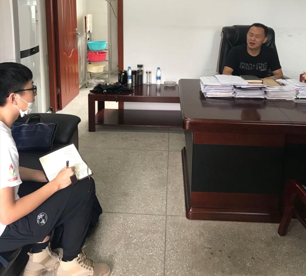 在牡丹中学董事长办公室,钟炳男同学采访了学校的段董事长,他向队员们讲述了牡丹中学巨大变化背后的故事。2015年以前,占地仅18亩的太平中学在校员工1260余人,老师仅70余人。办公条件极其简陋,没有教职工宿舍。员工住宿条件长久以来也没有得到过改善,员工只能居住在由教室改造而成的临时宿舍中,30人住一间宿舍而且没有热水供应。