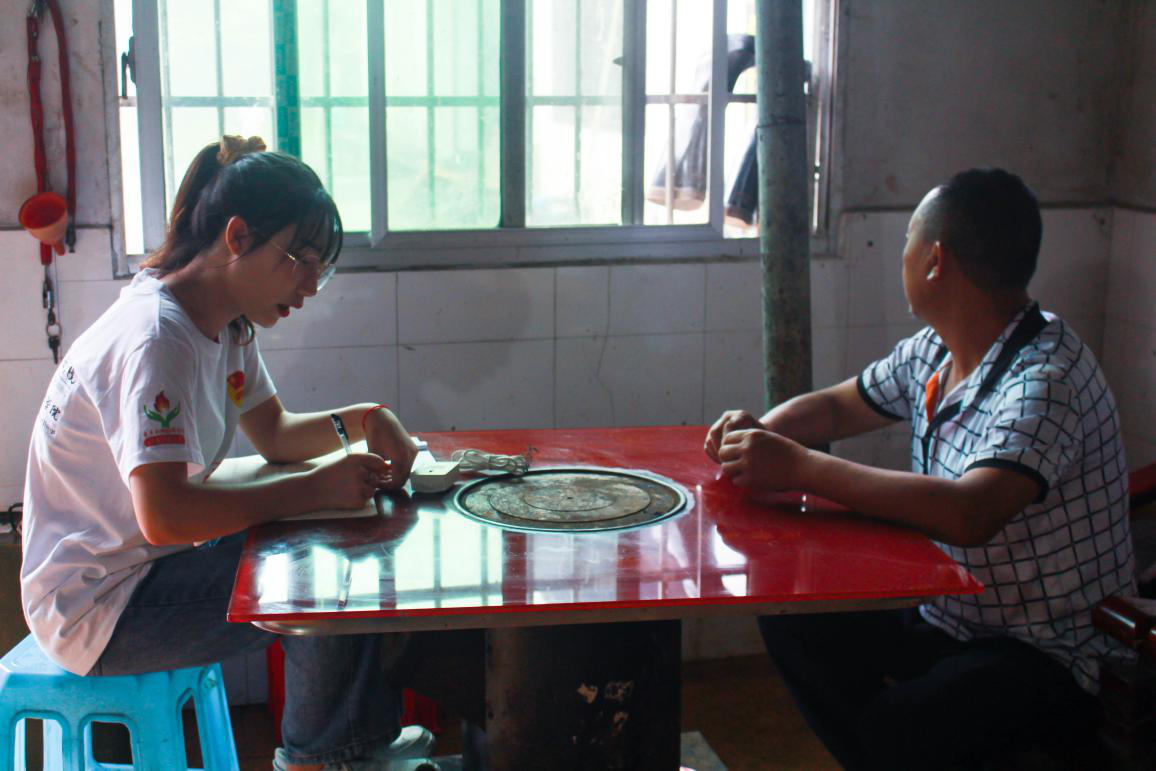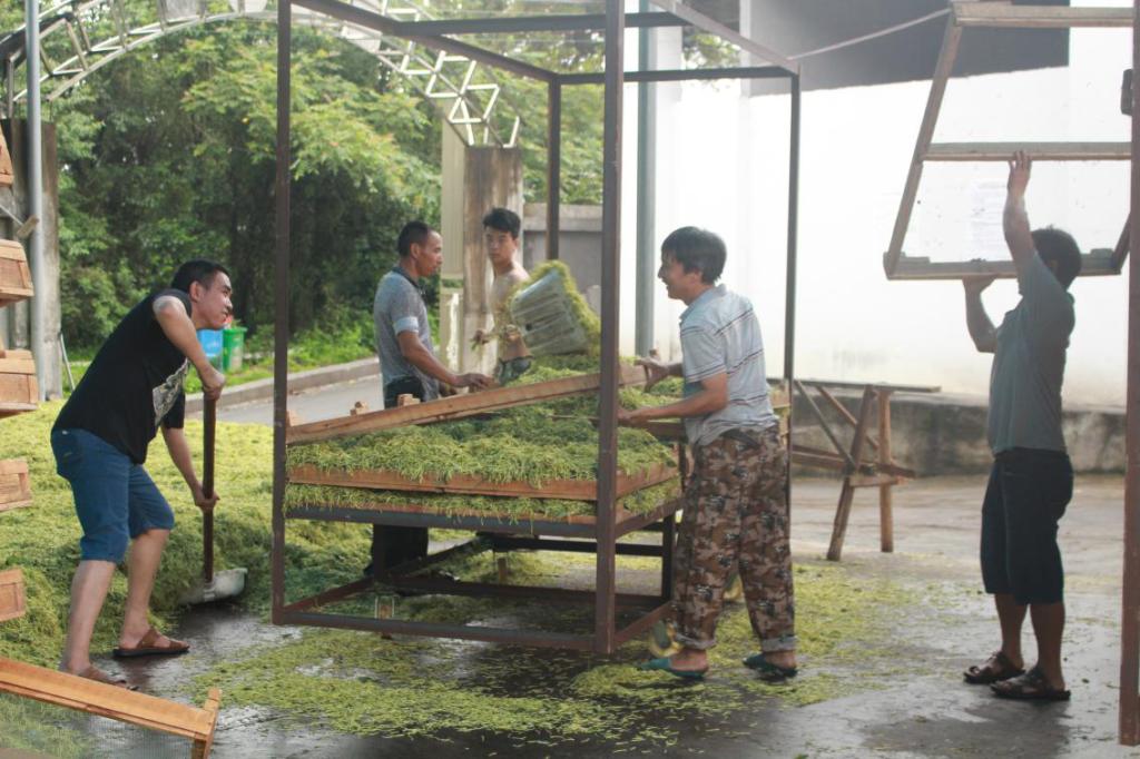 小组成员们来到永沛农业金银花加工厂,联系到了当地金银花基地的负责人尹先生。他在了解队员们到来缘由后,十分热情地邀请队员入屋进行访谈。从尹先生的介绍中“小手炉”队员们了解到:石柳乡因区位、资源、交通、气候等优势吸引了台资企业到此投资,金银花基地占地共占地1000亩,采取“公司+基地+农户”的模式,并在政府的大力支持下于2011年建成了设有新建加工厂房,拥有整个彭水县首家中药材金银花杀青烘干线,确保金银花种植科学、高效、高产,保证经济效益。