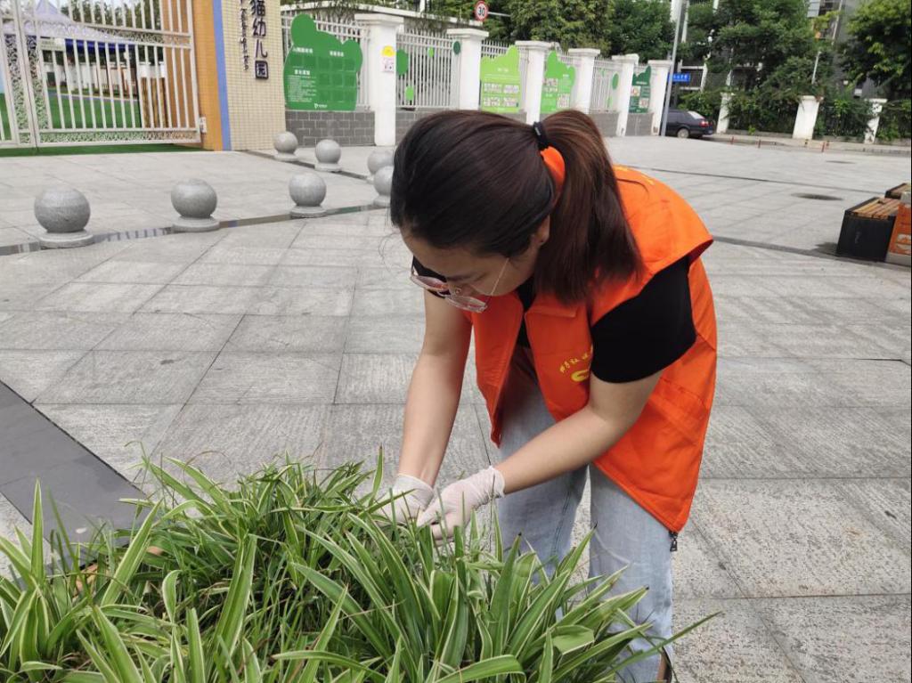 (通讯员蒋雷 李洋 熊森浩)8月27日,重庆电子工程职业学院“小手炉”返家乡实践小组来到成都市成华区白莲池街道熊猫大道。为了发挥当代老员工在服务群众、促进社会和谐方面的作用,以实际行动树立当代老员工的良好形象,返家乡实践小组围绕“爱成都 迎大运”系列活动,在菁华翠庭小区开展“共创美好家园”志愿者活动。看到原本随处可见垃圾的小区街道、杂乱的草坪、布满灰尘的玻璃墙、扶手、座椅瞬间焕然一新,小区环境得到了改善,老员工的责任感和使命感也得到了提升。