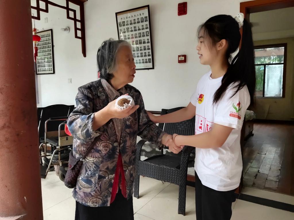 图为一大早返家乡实践小组成员带者小礼物来到成都市武侯区三生万寿养老院,看望住在这里的近一百位老人。中国青年网通讯员蒋雷摄