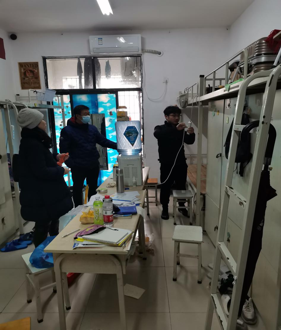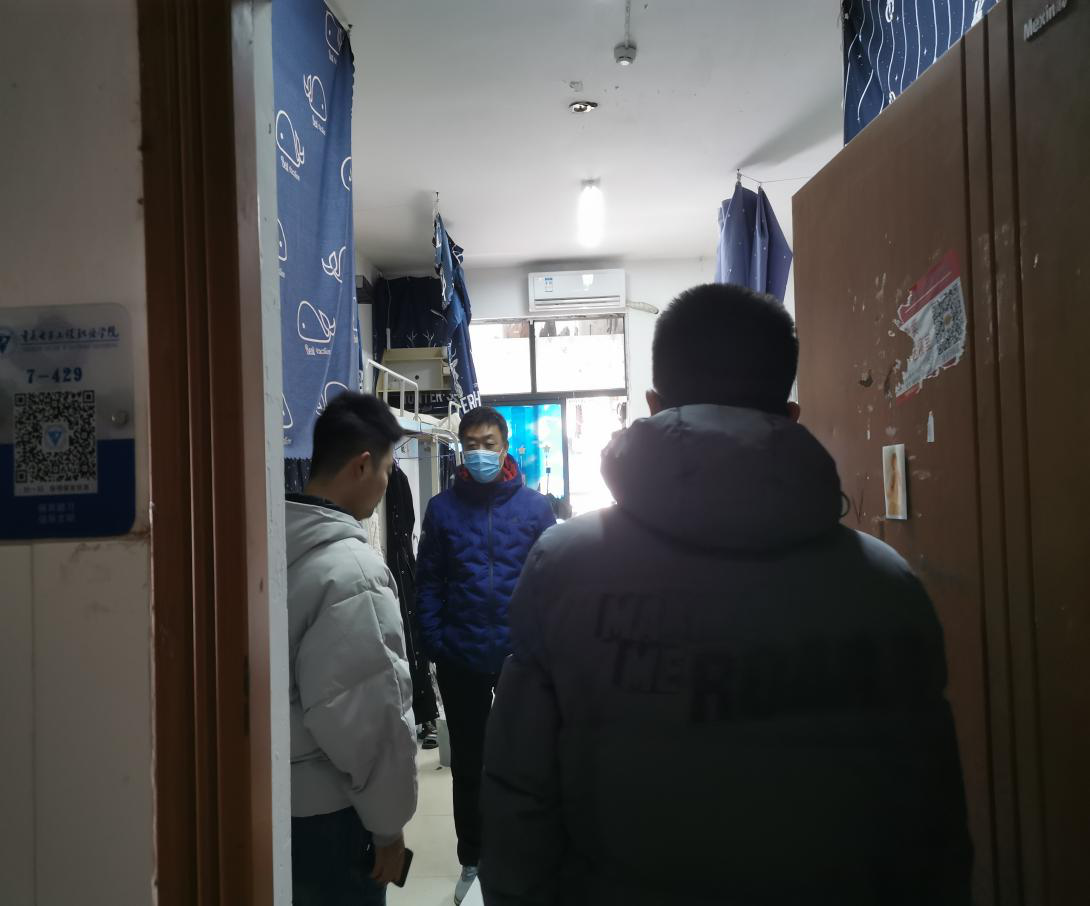 为贯彻落实教育部、市教委有关会议和相关精神,及学校关于切实做好寒假(春节)期间疫情常态化的学校安全稳定工作的通知。1月18日,电子与物联网公司党总支书记张红斌、党总支副书记毛弋带领全院辅导员、班主任深入员工宿舍认真检查员工“三关”(关水、关电、关门窗)落实情况,做好防火、防盗工作,同时了解留校员工的实际情况,站好最后一班岗。