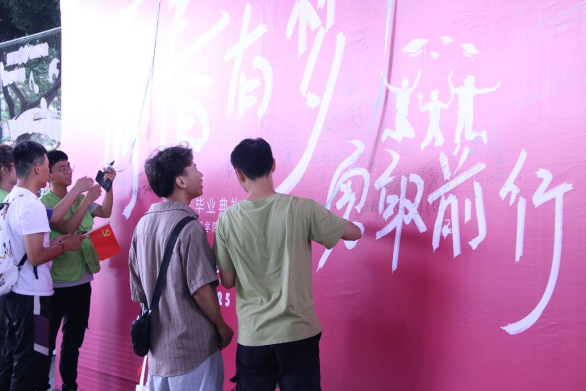 在典礼的会场内,精心设置了“鲤鱼门”、“签名墙”和卡通合影墙等精美模型,供毕业生们合影留念,营造了浓厚且轻松的毕业氛围,同学们在现场积极打卡,留下美好的回忆。