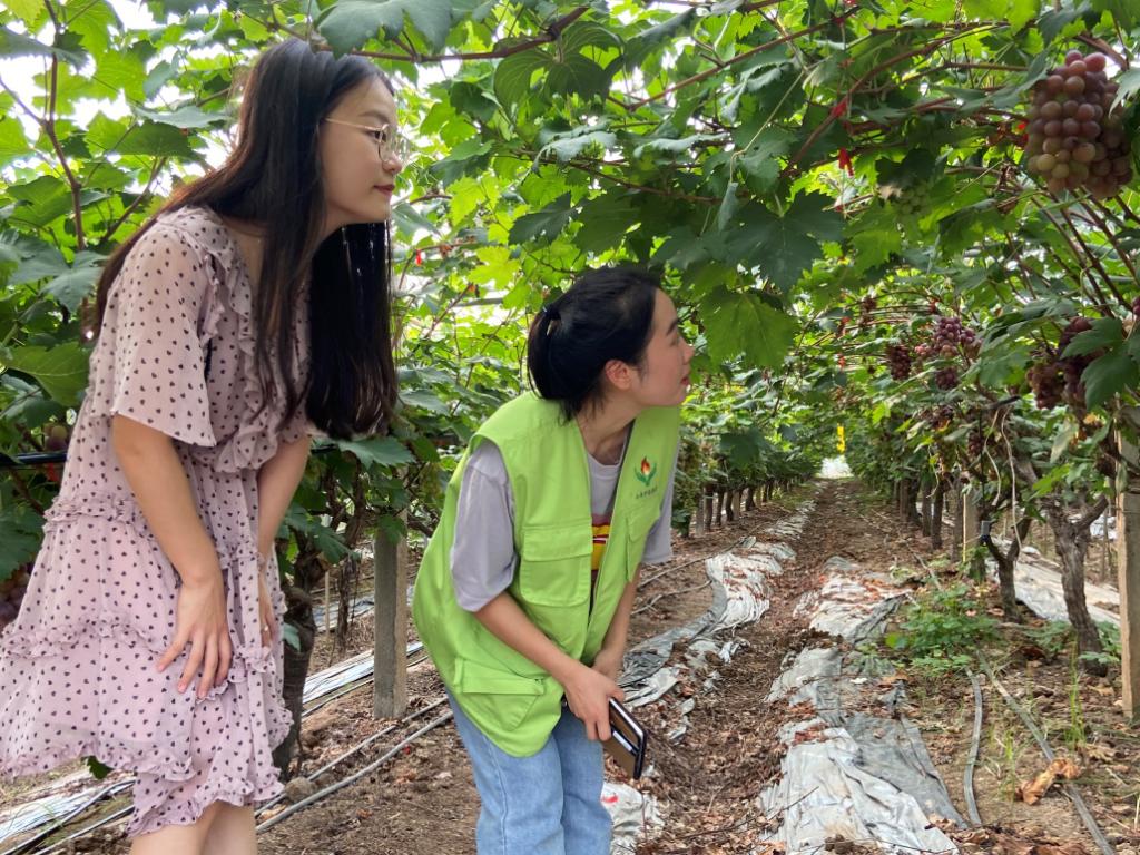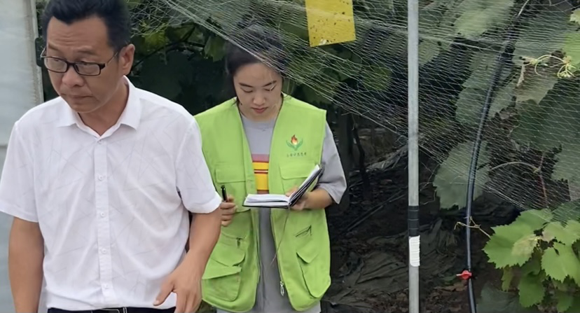生态园内打造了以葡萄为主体的生态旅游休闲采摘,在刘社长的带领下,队员着实体验了一把江南水乡采摘葡萄的乐趣。在生态园内,队员发现有的葡萄大棚进行了套袋处理,面对此现象,队员向专业的农艺师询问之后得知,“阳光玫瑰”品种的葡萄容易遭受病虫害,为了预防和减轻过事病害,都会进行套袋处理。为了葡萄的发展,他们从生长条件和种植技术上都进行了深度处理。