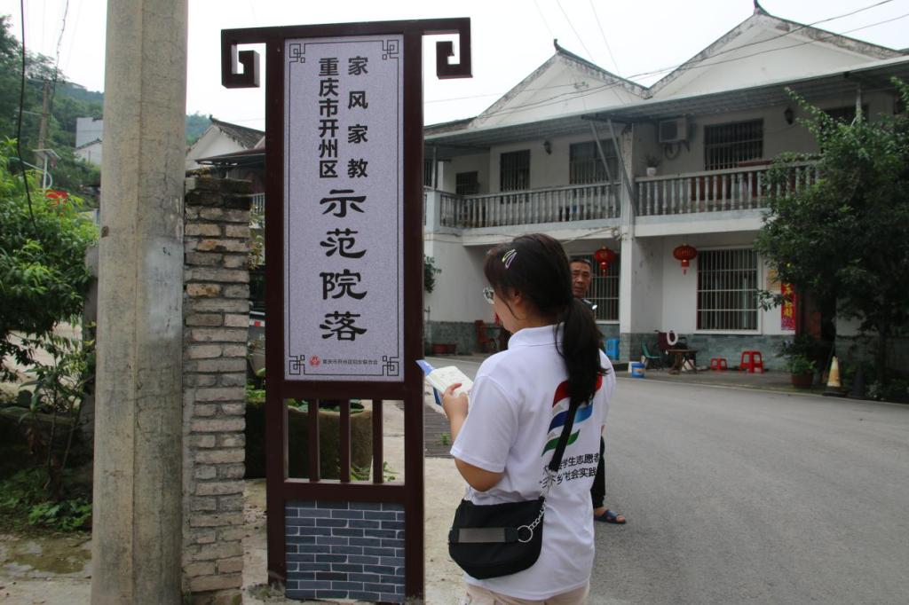 图为重电“小手炉”实践团队队员来到重庆市开州区乡风、家风、家教示范村落——福城村。