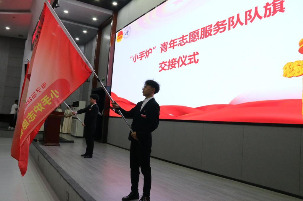 颁奖后,由员工会第三届主席团成员向第四届主席团成员进行隆重的团旗·队旗交接仪式。