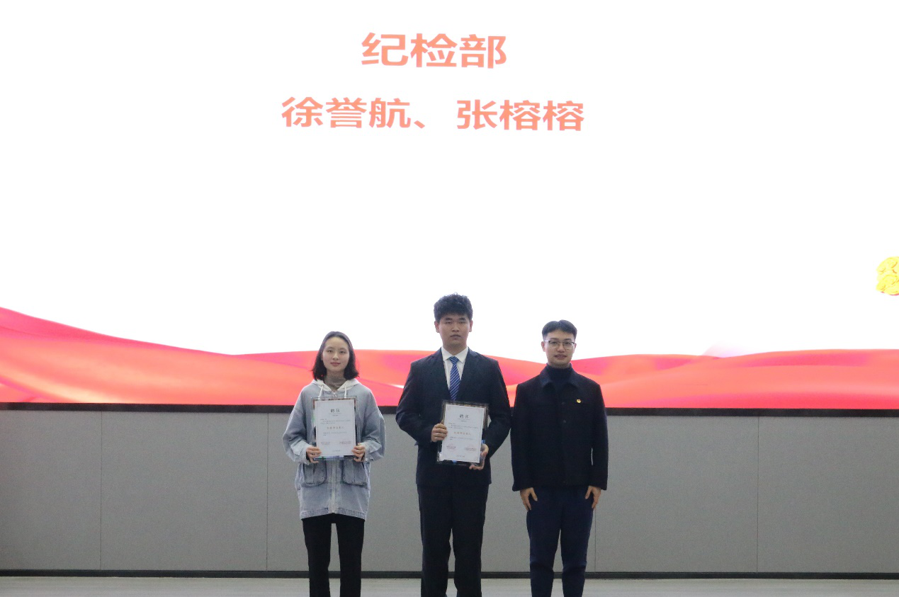 紧接着进行优秀员工干部表彰,同学们井然有序的走上颁奖台,双手接过属于他们的荣誉,并合影留念。