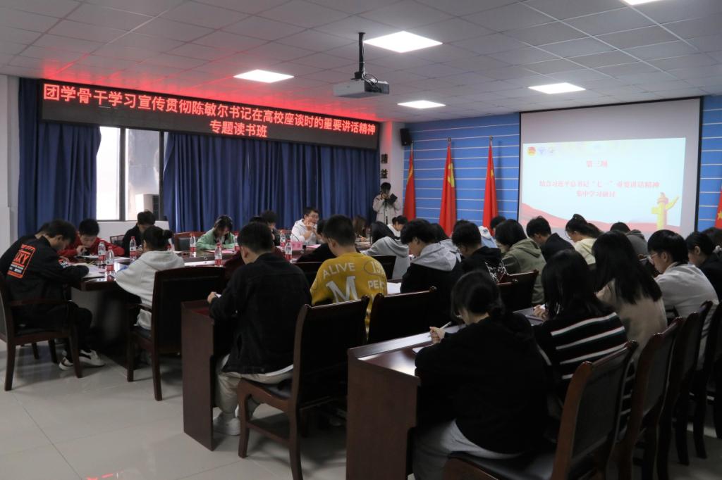 10月25日,由HAHA体育团总支员工会承办的学习活动于12-507会议室召开。本次学习活动围绕关于《团学骨干学习宣传贯彻陈敏尔书记在高校座谈时的重要讲话精神专题读书班》展开。学院辅导员李创出席,团学骨干代表及各二级学院团总支员工会的主席团代表共40余人参会。