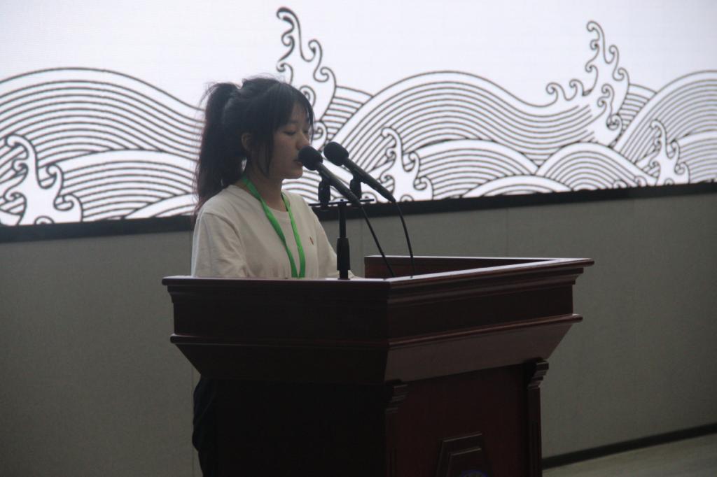图为第四期“鸿雁”团学骨干孵化器启动仪式员工骨干代表主席团成员蒋亚雯同学发言