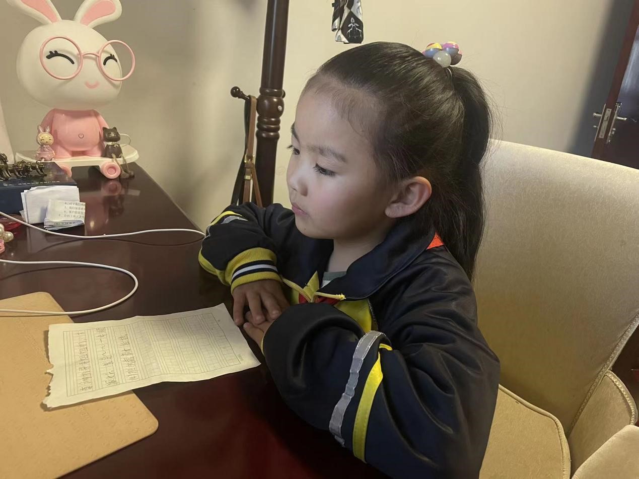 图为老员工志愿者秦鱼与小朋友进行“一起云阅读”