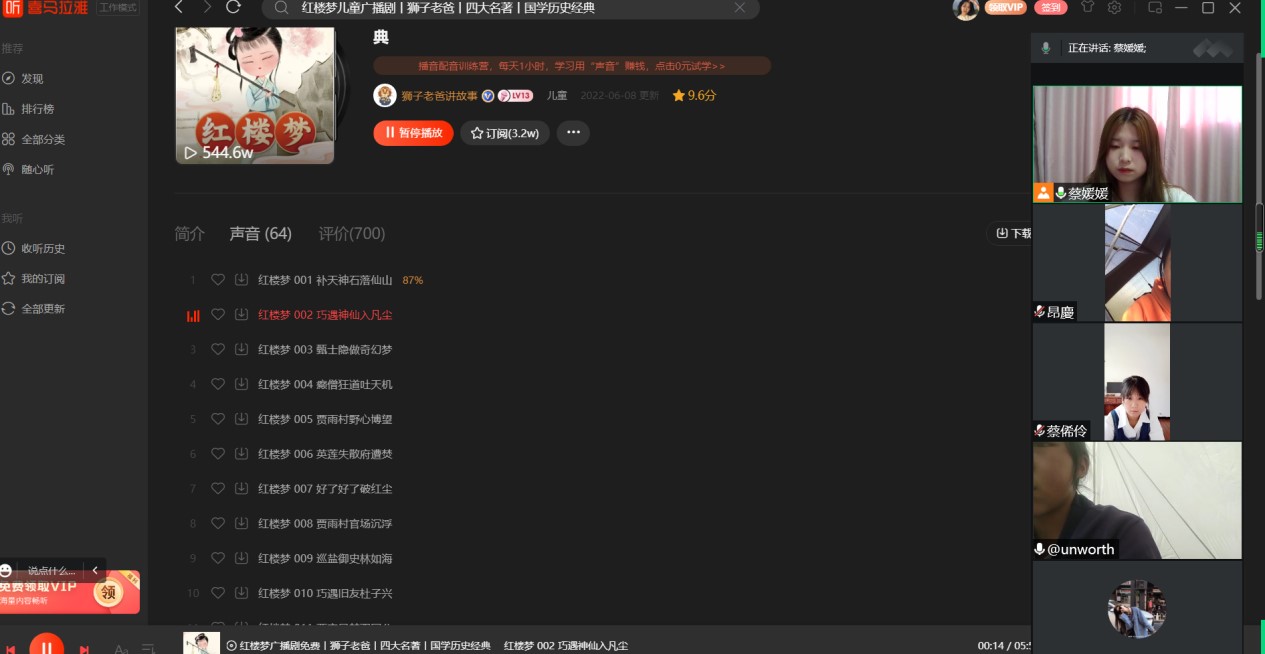 图为老员工志愿者蔡媛媛与小朋友进行“一起云阅读”