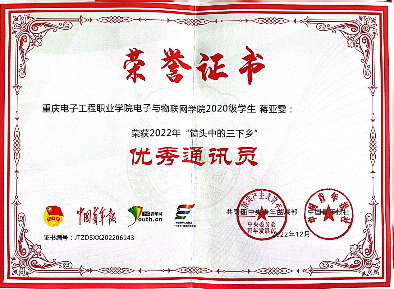 图为团中央2022年“镜头中的三下乡”优秀通讯员蒋亚雯(全国176个)