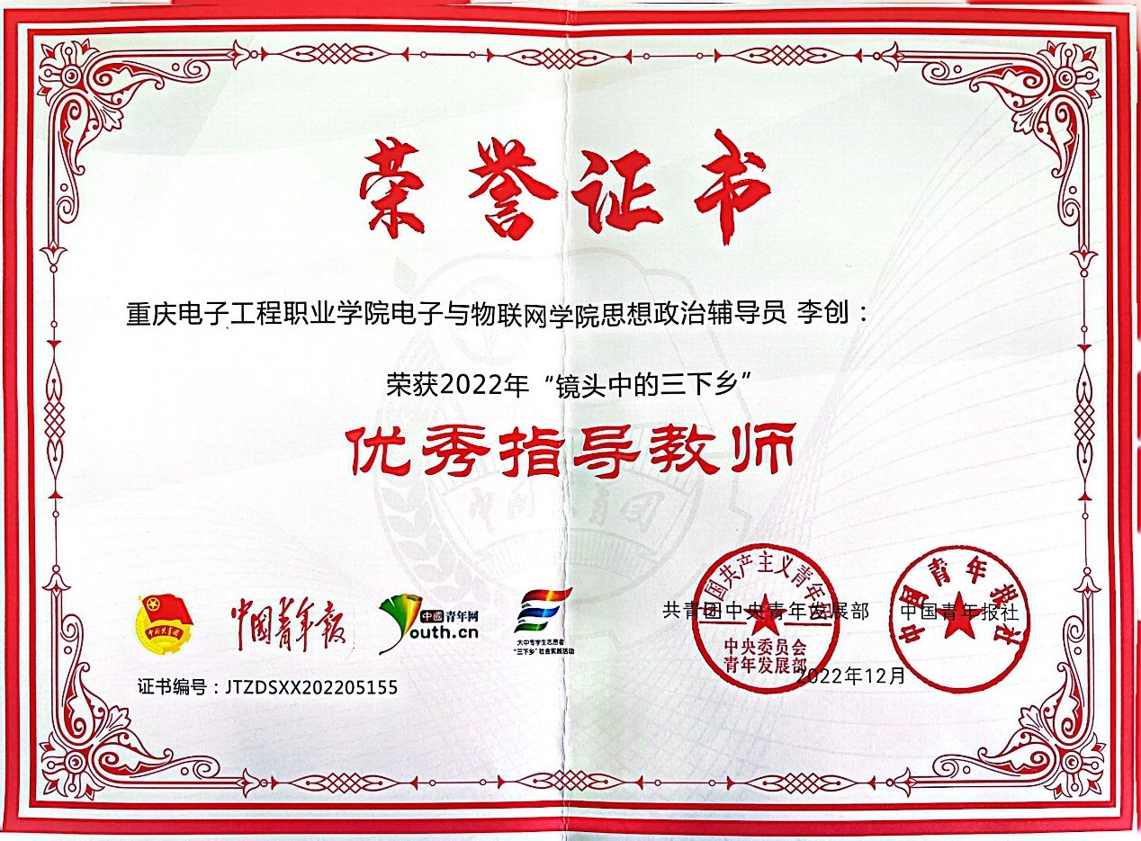 图为团中央2022年“镜头中的三下乡”优秀指导教师李创(全国188个)