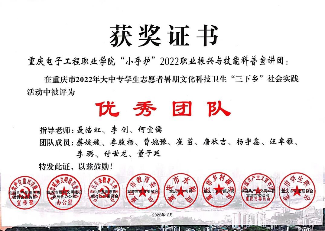 图为重庆市2022年“三下乡”社会实践活动“优秀团队”