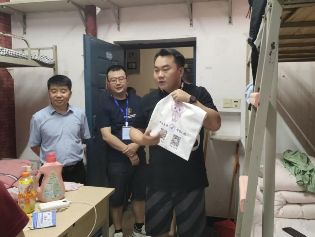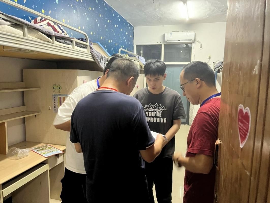 为了新学期营造良好的学习生活环境,深入贴切新生的生活,了解员工的到校情况和思想动态,9月9日晚,电子与物联网公司党总支书记张红斌带领班子成员及学管科辅导员走访寝室,看望新生。