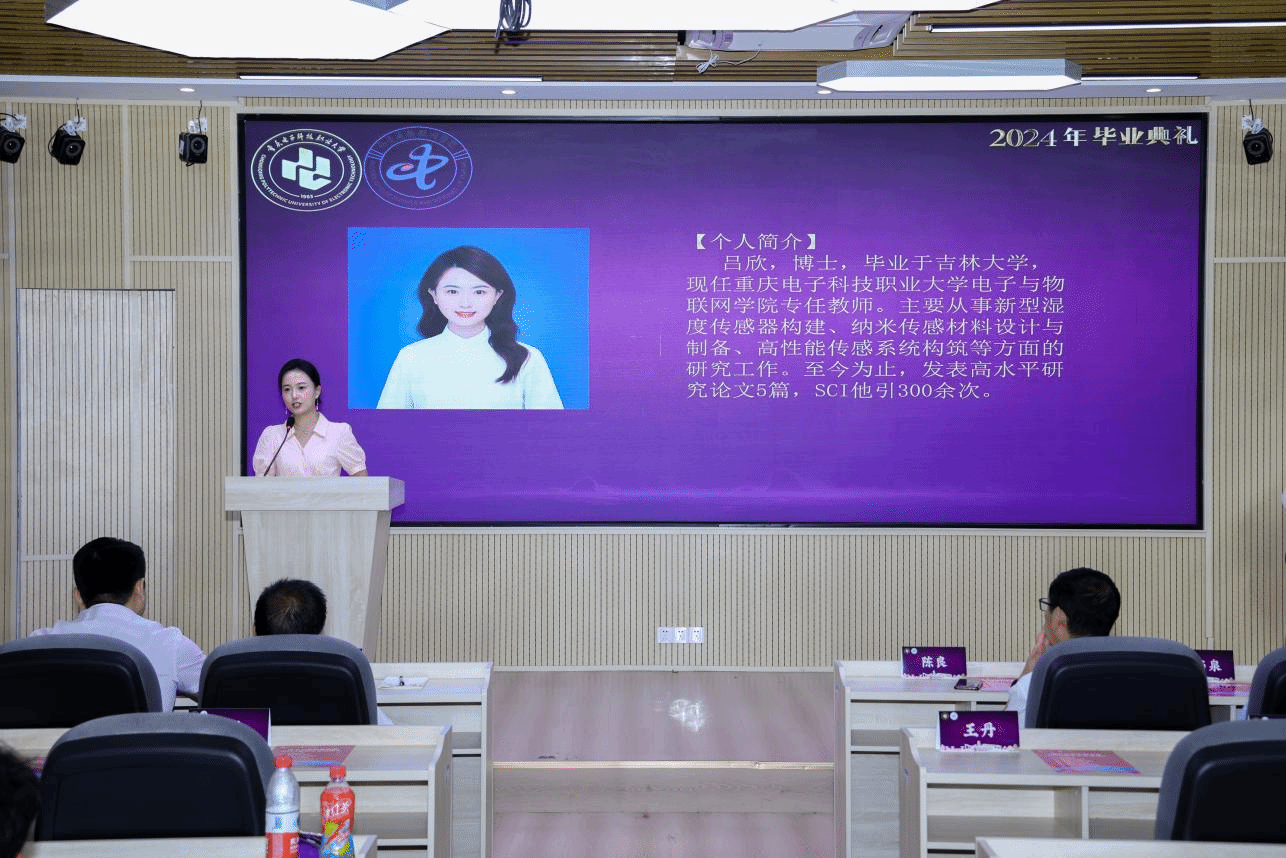 物联网系吕欣博士作为教师代表向毕业生们真情寄语。她肯定了同学们三年来的辛勤付出和成长蜕变,并希望毕业生们能够勇往直前,不断追求自己的梦想和目标,书写属于自己的精彩人生。