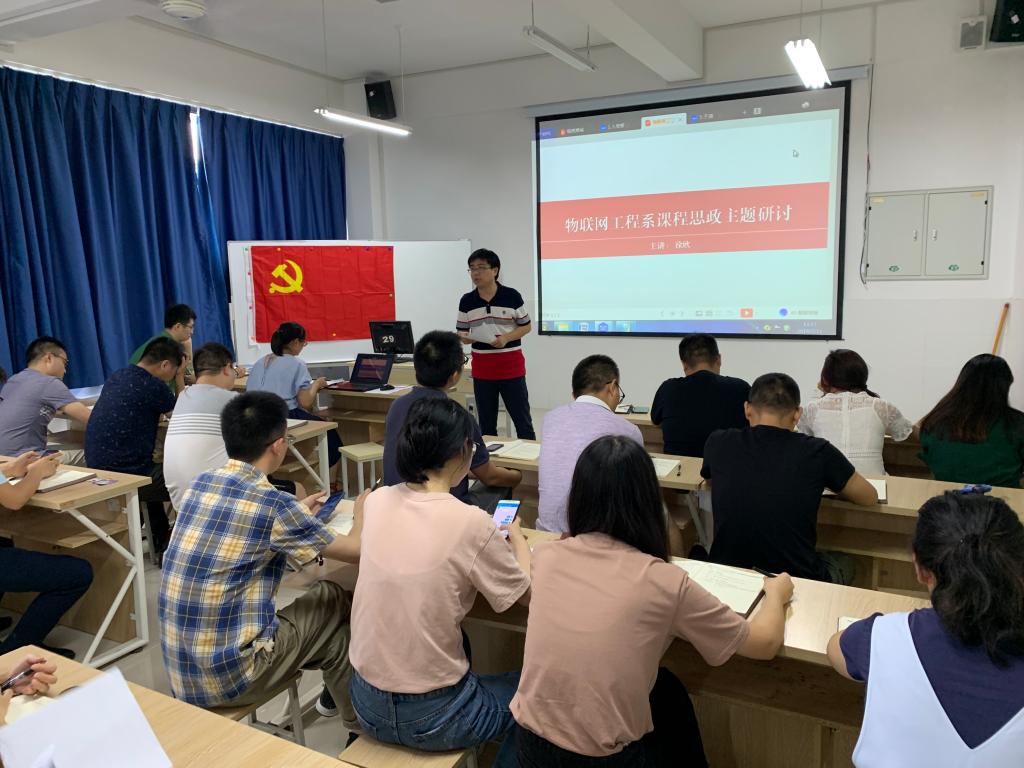 按学校组织部统一部署,物联网工程系党支部于2019年7月11日13:00在学院12403召开主题为“我为党旗添光彩”的党日活动,活动后进行了课程思政专题党课。