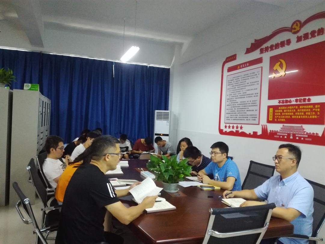 王用鑫同志介绍了本次主题党日活动的主要内容及学习方式。大家集中学习《习近平新时代中国特色社会主义思想学习纲要》——“把党建设更加坚强有力”;学习习近平总书记在“不忘初心、牢记使命”主题教育工作会议、中央政治局第十五次集体学习的重要讲话;学习研讨中央“不忘初心、牢记使命”主题教育领导小组印发《关于在“不忘初心、牢记使命”主题教育中认真学习党史、新中国史的通知》;学习《习近平关于“不忘初心、牢记使命”论述摘编》——“中国共产党人的初心和使命,就是为中国人民谋幸福,为中华民族谋复兴”;学习研讨《见证初心和使命的“十一书”》(贺页朵的“宣誓书”)。