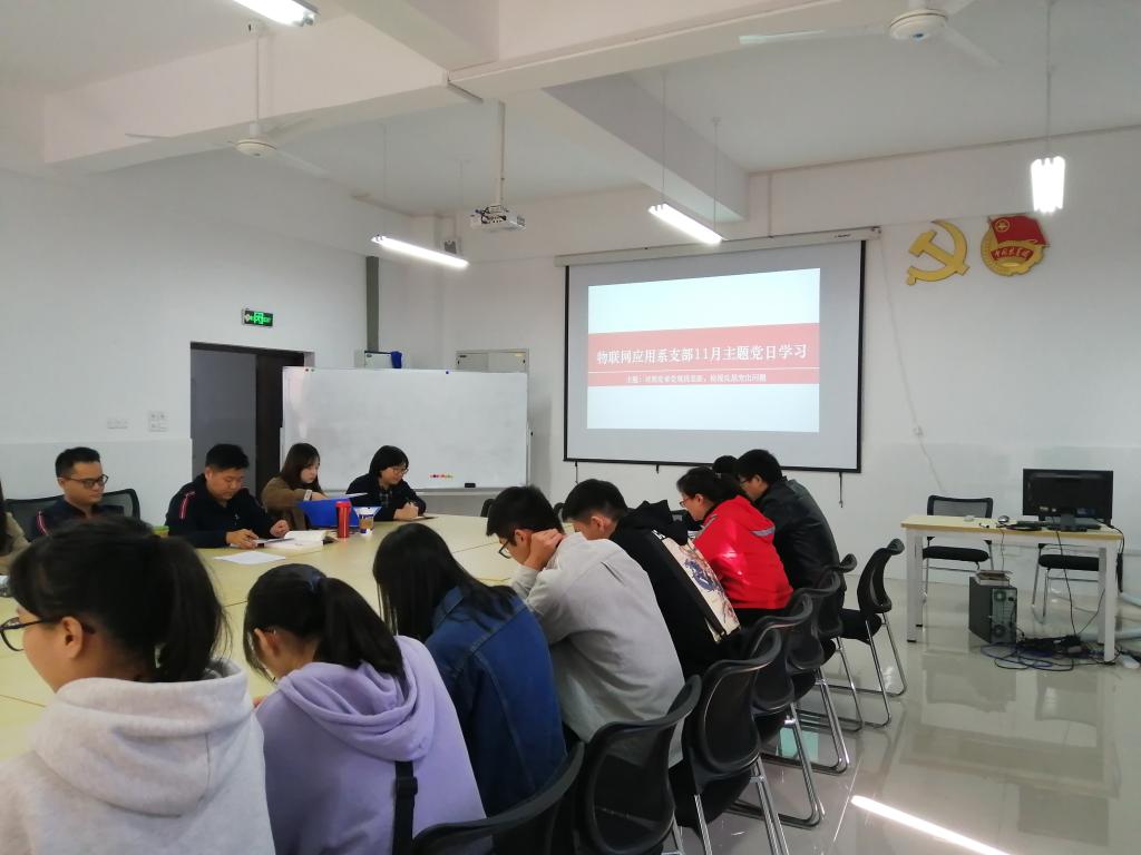 按学校组织部统一部署,物联网应用系党支部于2019年11月14日14:00在学院12504召开主题为“对照党章党规找差距,检视反思突出问题”的主题党日活动。
