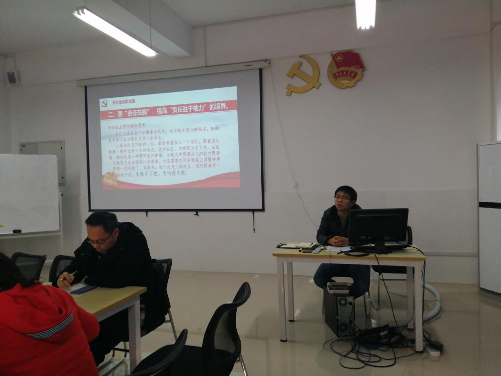 会议第五项,支部书记徐欣同志做了“心怀责任,勇于担当”的专题党课,指出党员领导干部做好新时代使命担当,必须明确责任所在,心有所系、行有所戒、“责”有所问。同时强调“责任在行”,增强“责任重于泰山”的观念,教师党员要担起专业建设的责任,员工党员要在学习上和生活中发扬共产党员的优秀品质,积极实践责任,严格履职行责。