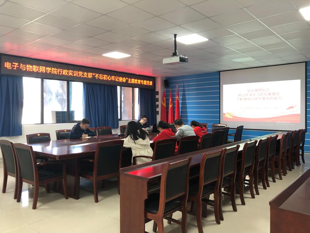 11月14日下午13:30,电子与物联网公司党总支行政实训党支部召开支部书记讲党课学习活动。在“不忘初心、牢记使命”主题教育学习背景下,本次党课主题为“坚定理想信念,树立终身学习的发展理念,不断增强为师生服务的能力”,廖金权同志为主讲人,支部6名党员参会学习。