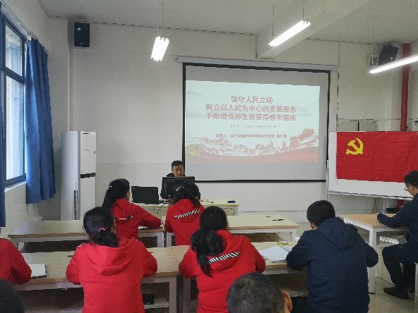 2019年11月14日,公司党总支书记张红斌同志在12-403教室进行了主题为“围绕坚守人民立场,树立以人民为中心的发展理念,不断增强师生的获得感幸福感”的授课。智能电子系党支部全体师生党员参与学习,公司党总支副书记毛弋列席。